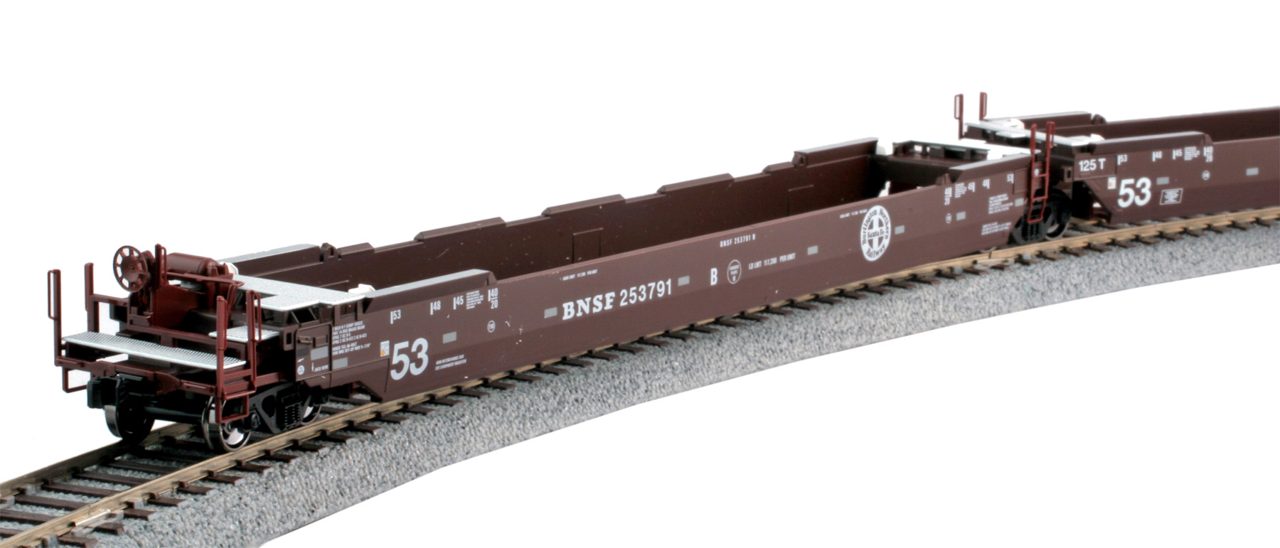 Intermodal container service is one of the most popular types of freight service on rails today. The Maxi-IV car is the mainstay of the U.S. domestic double-stack car fleet. Providing an optimum balance between tare weight and capacity, the Gunderson MAXI-IV is a 3-unit articulated double-stack car that can handle containers from 20-foot to 53-foot long in the well and containers 40-foot to 57-foot in the top, or double-stacked, position. As of a result of its versatility and sturdy construction, the MAXI-IV is now the mainstay of the U.S. domestic double-stack fleet. The popularity of this car on North American rails is underscored by its popularity with model railroaders today!